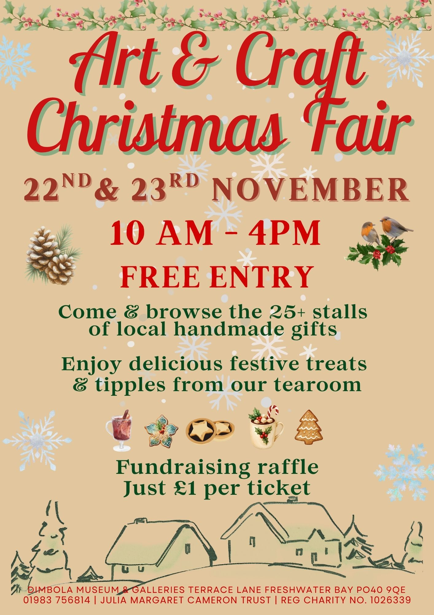 Dimbola’s ever popular Art & Craft Christmas fair is back on the 22nd and 23rd November. Expect to find over 25 stalls of quality handmade gifts by local crafters selling items such as jewellery, glass work, felting, paintings, pottery and more.